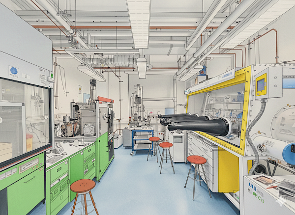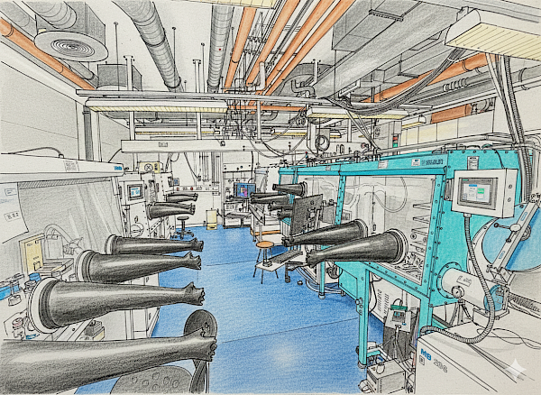 Our laboratories support the full fabrication of perovskite single-junction, perovskite–silicon tandem, and all-perovskite tandem solar cells with high throughput and different scales. We operate multiple gloveboxes dedicated to specific processing steps, enabling several researchers to carry out experiments simultaneously. Thin-film deposition capabilities include two thermal evaporators equipped with multiple effusion sources and resistive boats, two sputtering systems with complementary functionalities (including soft-deposition options), and an atomic layer deposition (ALD) system for metal oxides. Substrate preparation is supported by plasma and UV–ozone cleaning systems, as well as multiple fume hoods for ambient-air processing and chemical synthesis. In addition, we have full access to a fully equipped wet-chemistry laboratory within our division.